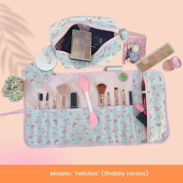 Ten todo organizado con nuestros estuches enrollables para las brochas de maquillaje y nuestro neceser hacendó juego.